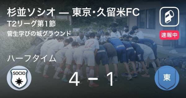 速報中 杉並ソシオvs東京 久留米fcは 杉並ソシオが3点リードで前半を折り返す 21年8月29日 エキサイトニュース